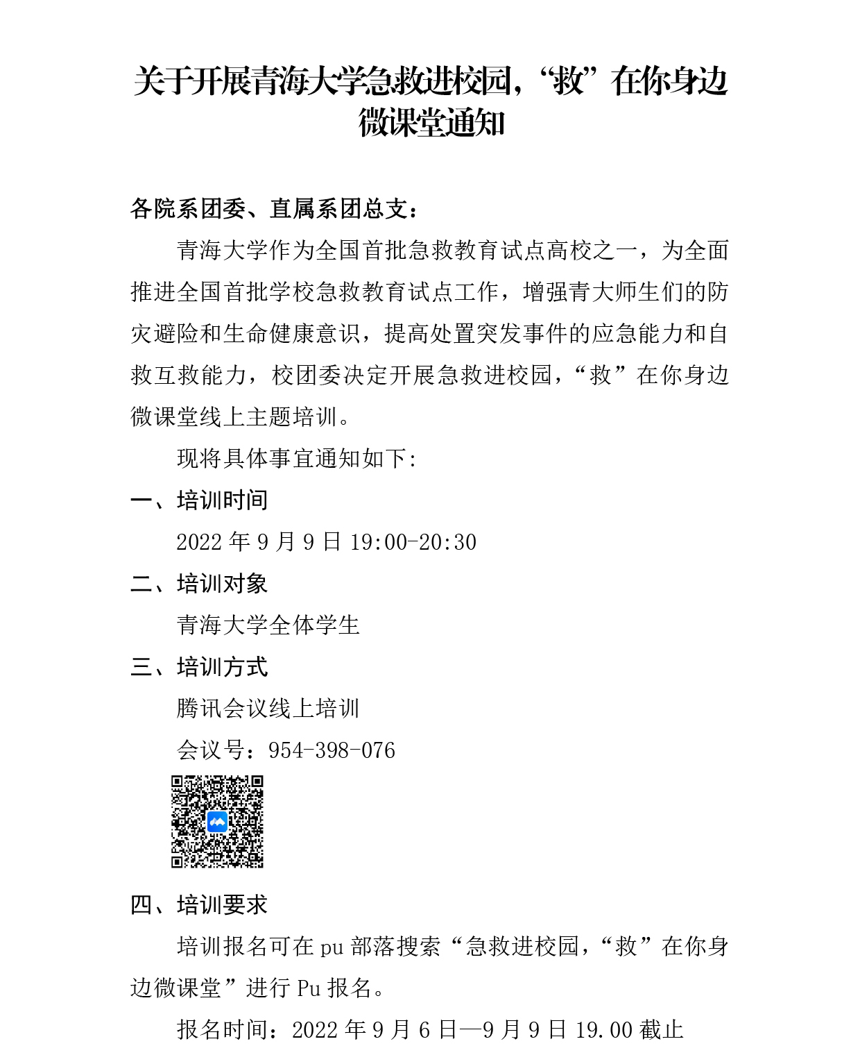 关于开展浪live 急救进校园,“救”在你身边微课堂通知