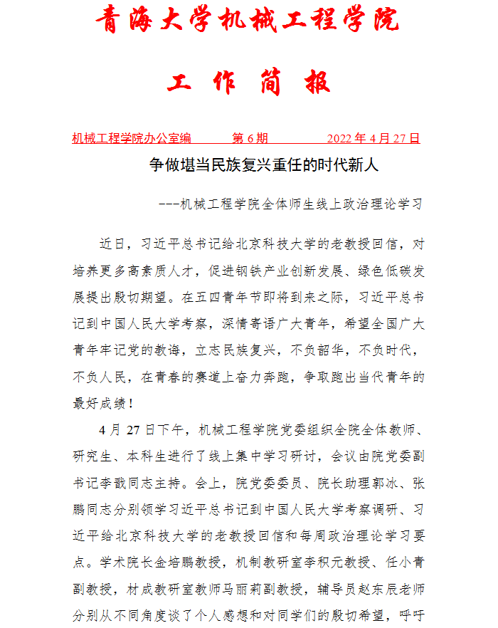 争做堪当民族复兴重任的时代新人 ---浪live 全体师生线上政治理论学习