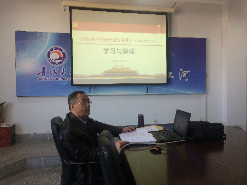 随后,由贾书记带领全体党员对《中国共产党纪律处分条例》(2018年修订版)进行了学习和解读,并以全文通读的方式学习了《条例》中的第一编《总则》和第二编《分则》中的第六章,剩余部分要求各支部进行专题学习,并撰写学习心得。通过专题学习,牢固树立了法律红线不能触碰、法律底线不能逾越的思想。