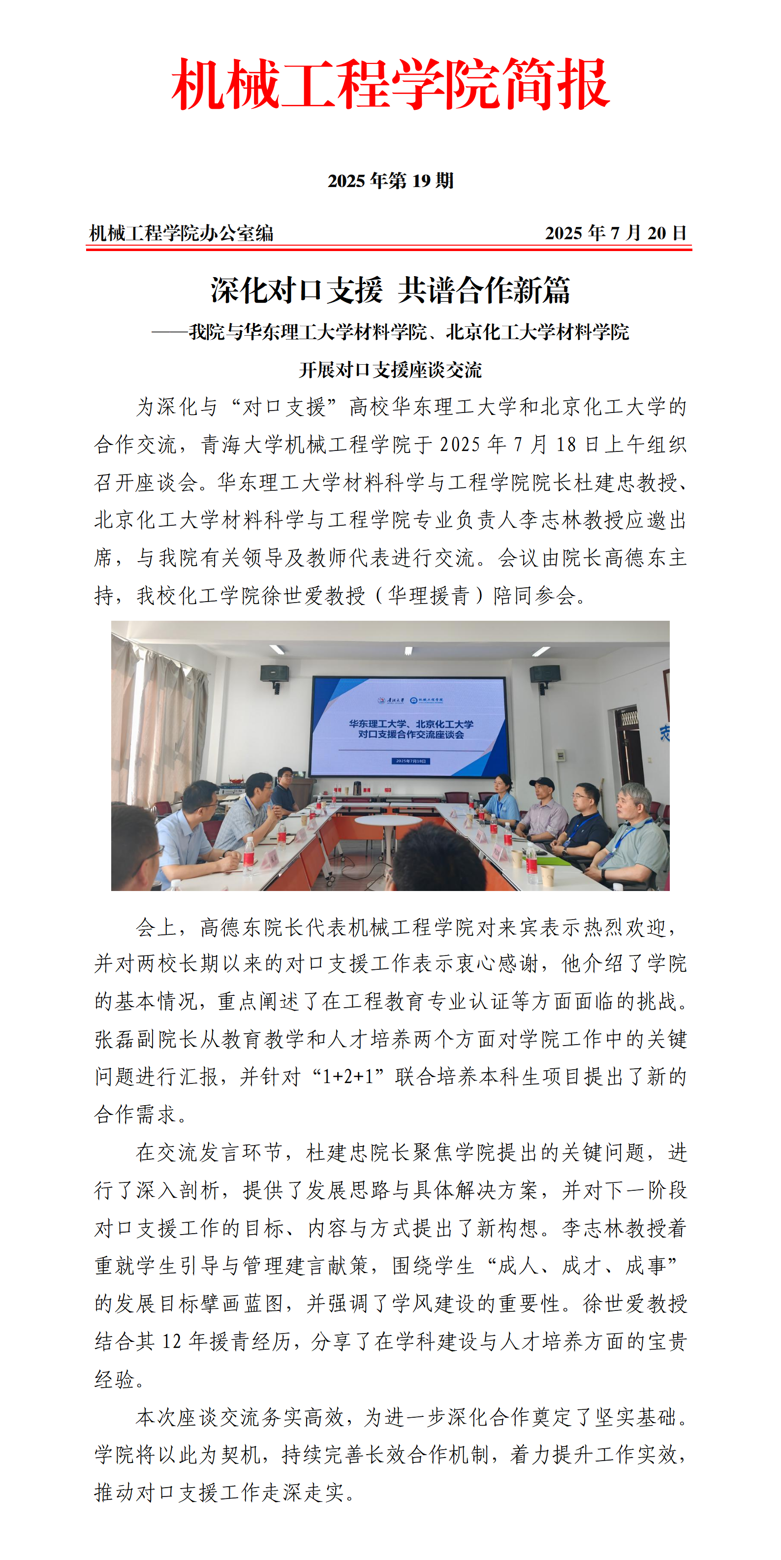 深化对口支援 共谱合作新篇——我院与华东理工大学材料浪live 、北京化工大学材料浪live 开展对口支援座谈交流