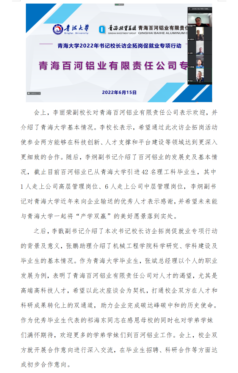 浪live 开展2022年书记校长访企拓岗促就业专项行动 ——青海百河铝业有限责任公司专场活动